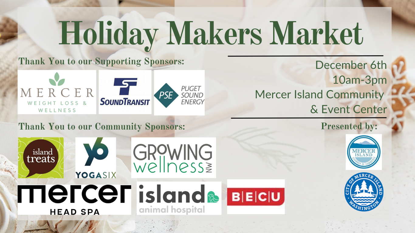 Mercer Island's Holiday Makers Market is your one-stop destination for unique, handcrafted goods and services from local artisans. We have something for everyone: